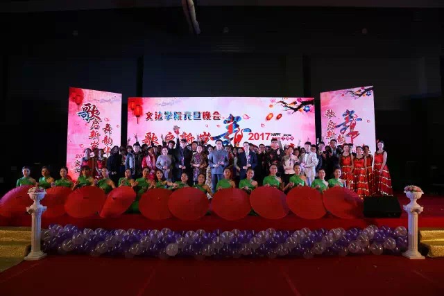 在人才培养、教学科研、学科建设、人才引进、队伍建设等方面所取得的成绩,表达了对新一年的期许,并对全体师生致以新年的祝福。张雷书记为大家带来了诚挚的新年祝福,并倾情演唱了一首《跟往事干杯》,杨建春书记携着他在超级演说家中的学员身穿长袍带来一段精彩的相声表演,博得全场热烈掌声。