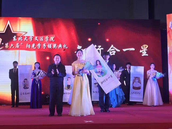 第六届“阳光学子”年度人物表彰仪式亦在本次元旦晚会隆重举行。经过前期团支部的推荐与评委会的评选,五名在文体、学业、学生工作等方面表现优异的学子入围今年阳光学子年度人物,他们分别是“知行合一星”王源瀛、“爱岗敬业星”姜冬、“驰骋体坛星”胡侠义、“勤勉笃学星”王雪纯、“文斐艺卓星”章美。阳光学子表彰环节由夏风云主持,张国臣、王辉、马天威、闫研、王刚五位领导分别为获奖学子颁发奖项。