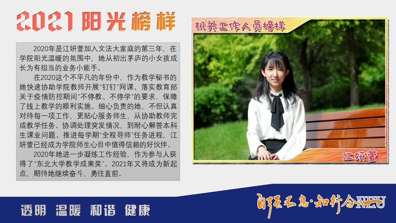 探花视频 2020年度机关工作人员榜样:江妍萱