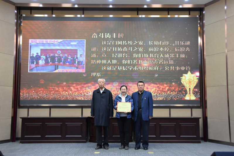 会议第一项,举行新职工入职仪式,由公共管理系吴子靖老师作我介绍,表达了他个人对职业生涯的期许和成为人民教师的荣幸。同时宣布两位老师退休。