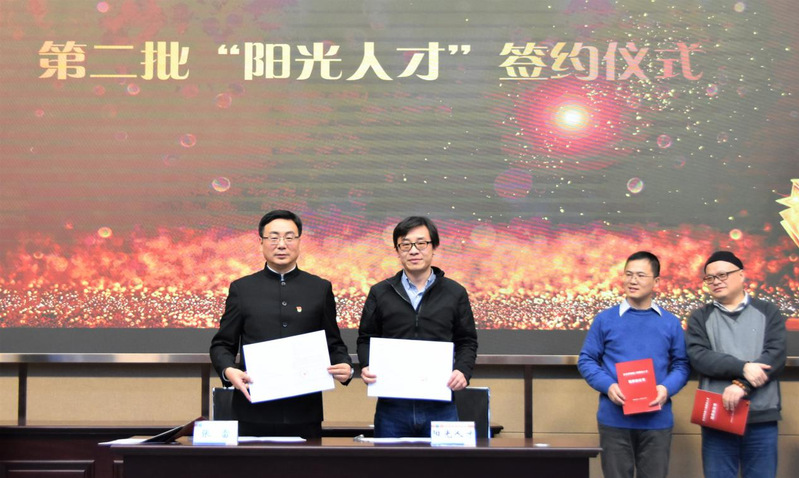 会议第二项,开展第二批“阳光人才”签约仪式。院长张雷依次与阳光人才颁签署培养协议书。他们有国家级培养种子:颜德如、曹海军;国家级青年人才项目种子:吕晓;副教授层次学术骨干:张景奇、张晓杰、满小欧、张继亮;还有讲师层次优秀学术骨干:王作宝、高佳。在培养期间,张景奇老师已晋升为教授,王作宝老师已晋升为副教授。吕晓教授作为阳光人才代表发言。