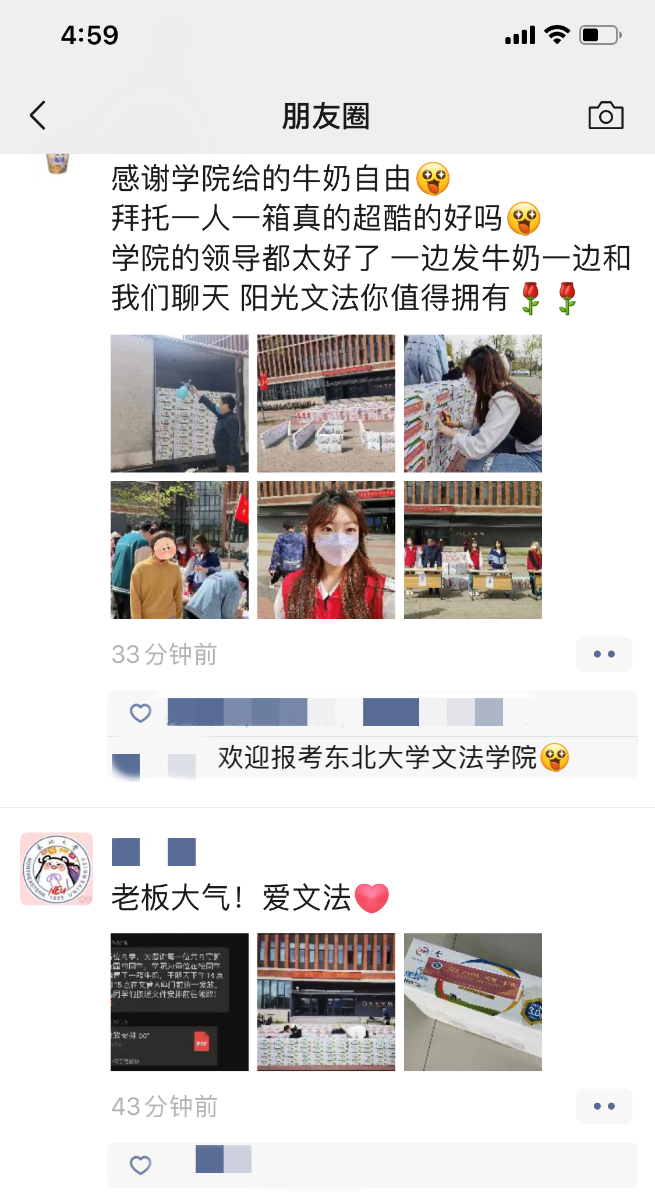 在文管学馆门前为全院在校学生每人分发一箱牛奶作为五一劳动节慰问品,探花视频
