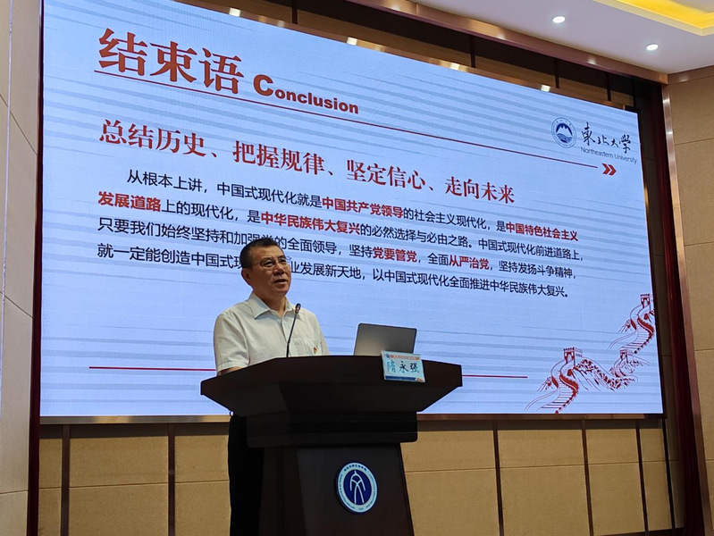 隋永强以中国革命、建设、发展为脉络,依次讲述了新民主主义革命时期、社会主义革命和建设时期、改革开放和社会主义现代化建设新时期、新时代中国特色社会主义时期。随后,结合党的二十大报告,从实际和理论两个维度分别阐述了中国式现代化新境界的内涵、中国式现代化必须坚持党的领导和以中国式现代化全面推进中华民族伟大复兴。