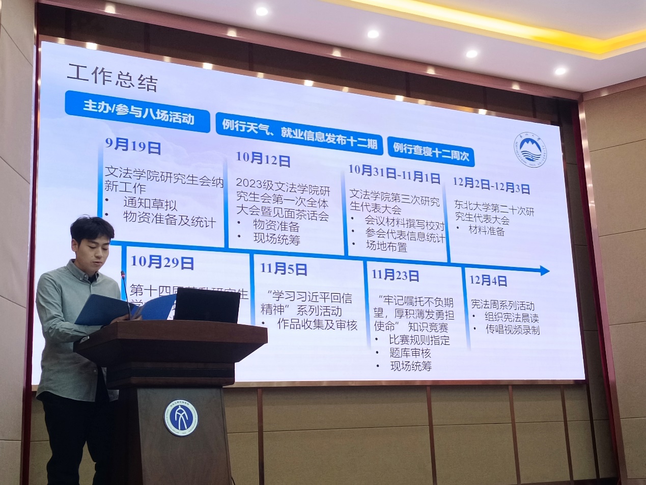 于浑南校区文管学馆B230室召开2023-2024学年秋季学期研究生会述职评议大会。探花视频