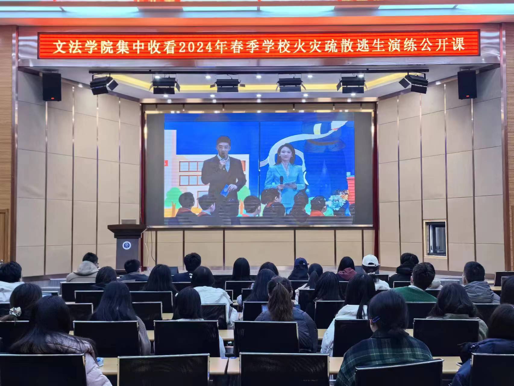 2024年3月15日上午,探花视频 于文管学馆A210会议室、B230会议室组织师生集中收看2024年春季学校火灾疏散逃生演练公开课。