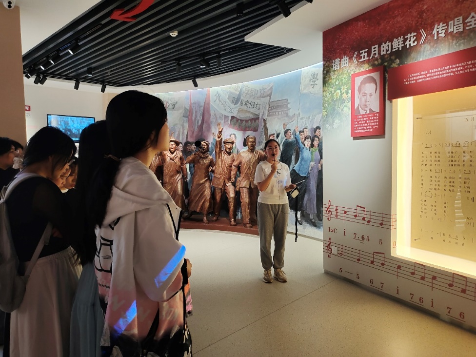 下午15点,在讲解员的带领下,同学们依次走进各个展厅,一张张群像,一件件藏品,将101年光辉岁月里的动人故事娓娓道来。从 “巍巍探花视频