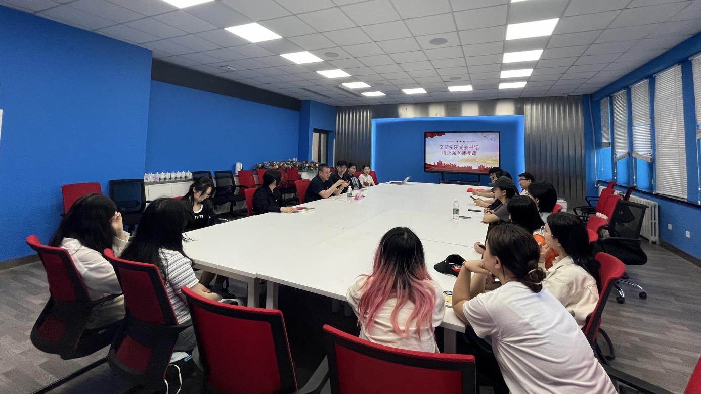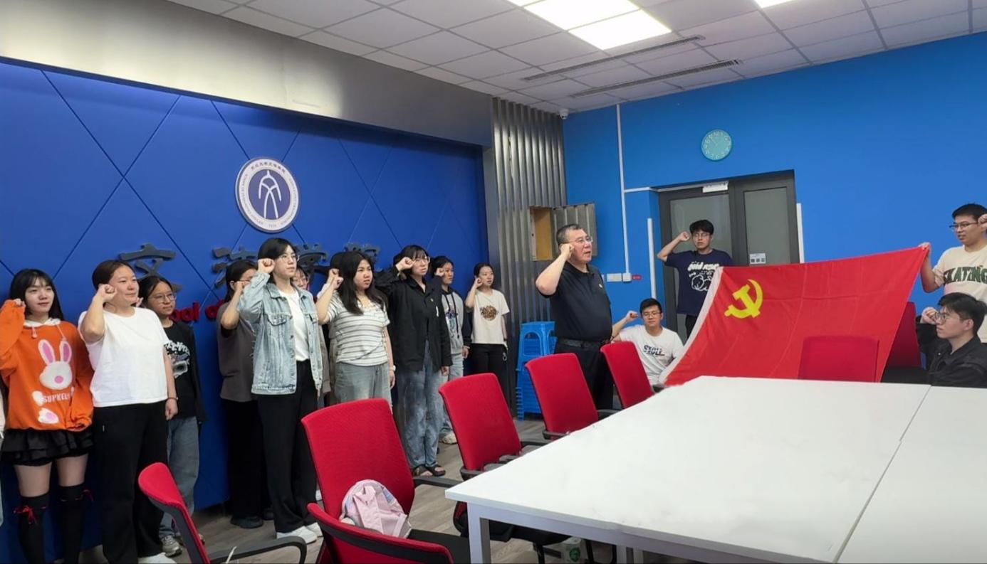 党课结束后,隋永强带领全体党员重温入党誓词,与党员同学展开座谈,就同学们学习、科研、就业等方面的困惑进行了深入交流和答疑解惑。